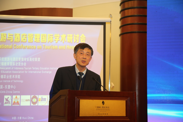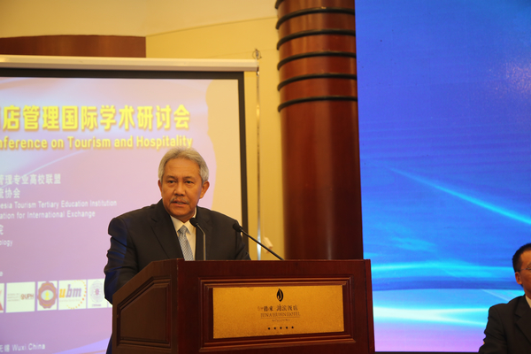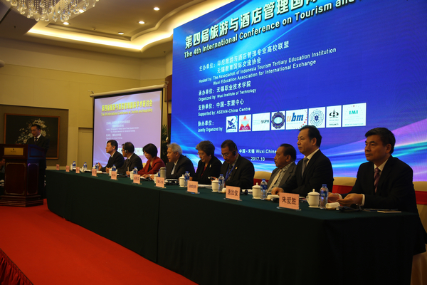 10月17日至18日,由印尼旅游与酒店管理专业高校联盟、无锡市国际教育交流合作协会主办,我校承办的第四届旅游与酒店管理国际学术研讨会隆重举行。来自印尼、马来西亚、瑞士及国内的145名代表共同研讨国际高等教育面临的难点、热点问题,共同探讨推进国际高等教育内涵升级、服务学生全面发展等方面举措,以进一步增强国际高等教育服务经济社会发展能力。印尼驻华大使Soegeng Rahardjo、中国-东盟中心秘书长杨秀萍、无锡市人民政府副市长刘霞、印尼科技与高等教育部私立大学联盟主席Ir .Bambang Supriyadi、印尼旅游部国家旅游业委员会主任I Gusti Putu Laksaguna、印尼旅游与酒店管理专业高校联盟(AITTEI)主席Suhendroyono、江苏省教育厅国际交流合作处处长林跃、无锡市教育局局长唐加俊、校领导朱爱胜、龚方红、冯渊等领导出席研讨会开幕式并致辞。龚方红校长主持开幕式。