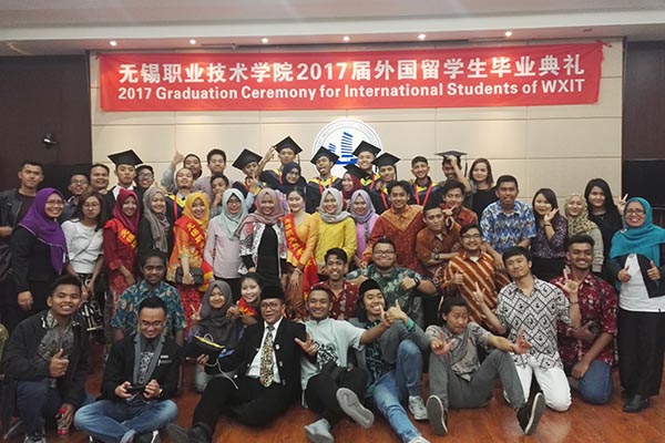 我校是无锡地区首个招收外国留学生的高职院校。8名毕业生全部来自印度尼西亚,他们经过三年在锡学习和生活,不仅掌握相关专业知识和技能,也被中国的文化深深吸引。毕业后,有6名学生已被南京信息工程大学、常州大学免试录取,继续攻读本科;1名学生将赴无锡一家中资企业的雅加达分公司工作;另有1名毕业生决定利用专业所学,回国创业。