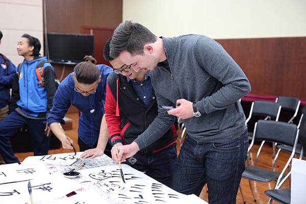 丹麦学生体验书法艺术