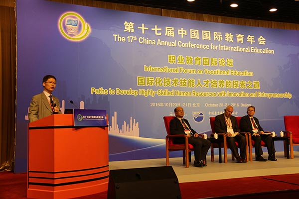 第十七届中国国际教育年会于10月20日至21日在北京召开,国家教育部副部长郝平、爱尔兰教育与技能部长查德·布鲁顿先生等国家领导人出席会议并致辞。本次年会主题为“创新与创业可持续发展人才成长之路:学校、企业和社会的合作伙伴关系”,共有来自40余个国家和地区的三千余名代表参加了年会。