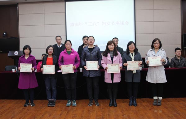 工会主席常华宣读了关于表彰2015年度优秀女教工的决定,张玲、杨晓波、黄越、高雅、李凡、王秦、周春兰、芦敏、江董玉等25位同志获表彰。党委副书记谈向群在节日贺词中指出,广大女教工在教育、教学、管理和服务等岗位上踏实工作、敬业奉献,为学校事业发展做出了重要贡献;并向全体女教工发出了三个“争做”的倡议,号召大家争做时代精神的先行者,争做中华民族传统美德的传承者和实践创先争优的红旗手。