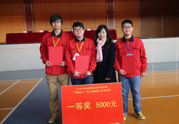 工业机器人技术应用赛项则是在《中国制造2025》战略背景下应运而生,今年首次列为省赛选拔项目,参赛选手需在4个半小时内完成机器人编程、视觉识别和动作控制等主要任务,我校郑贞平、芮长颖老师指导,王家志、王浩、佘志远组成的代表队凭借扎实的专业功底和技能素质夺得冠军;无锡商业职业技术学院、常州轻工职业技术学院代表队获二等奖,苏州工业职业技术学院等4支代表队获得三等奖。