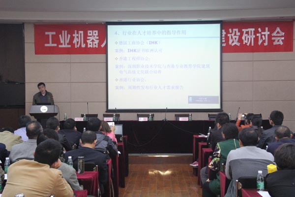 本次研讨会由电子工业出版社牵头主办,在工业和信息化行业指导委员会指导下,包括我校在内的部分高职院校、应用型本科学校和企业还联合成立了“工业机器人技术应用专业建设和课程建设工作委员会”。