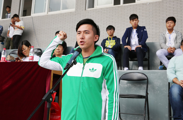 裁判员代表李铎和运动员代表葛强先后宣誓,校党委书记朱爱胜宣布2015年运动会开幕。随后进行了广播操比赛、舞龙表演和跆拳道表演。