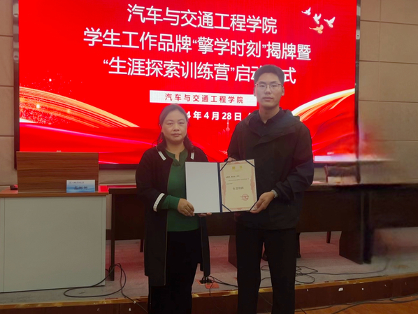 为进一步激发学生成长成才的内生动力,增强大学生职业生涯规划素养,4月26日下午,汽车与交通工程学院在国际交流中心二楼报告厅开展了学工品牌“擎学时刻”揭牌暨“生涯探索训练营”启动仪式。副校长强伟纲、汽车学院党总支书记张美娟、副书记刘雄、优秀校友郭祥龙、辅导员及近70余名学生代表参加了本次活动。
