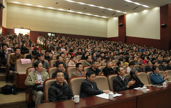 金征宇代表首先从大会意义、大会议程、政府工作报告、人大常委会工作报告、立法法修改说明、“两高”工作报告和江苏代表团审议等方面传达了十二届全国人大三次会议精神。并用图片展示了大会现场和李克强总理参加江苏代表团审议及与他亲切握手的情景,还传达了李克强总理对江苏在发展升级上走在全国前列的三点要求:一要通过改革开放率先在经济发展新常态下打造发展新动能;二要带头释放创新驱动新红利;三要在长江经济带发展中起引领作用。接着,他重点解读了政府工作报告的10个关键数据和11项新承诺,以及立法法修改中与人民群众相关的税收法定、地方规章等问题。并归纳了今年两会的10个热点关键词:改革、反腐、新常态、依法治国、一带一路、环保、城镇化、养老金改革、创业和价格改革,同时介绍了清新的会风,与大家分享了参加大会的感受。一个半小时的传达报告,最后在全校与会师生员工的热烈掌声中结束。