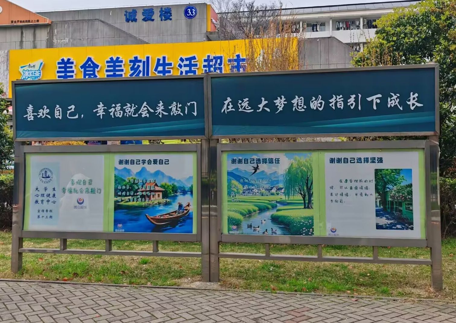 活动期间,学校在学生宿舍区、图书馆、心理健康教育中心等地开展了"'爱自己'心理科普宣传活动"。通过宣传栏、展架等形式,向学生展示了"学会直面情绪""选择信任""保持热爱"等系列心理科普内容,吸引众多学生驻足观看。该活动旨在帮助学生从喜欢自己开始,体验幸福生活。