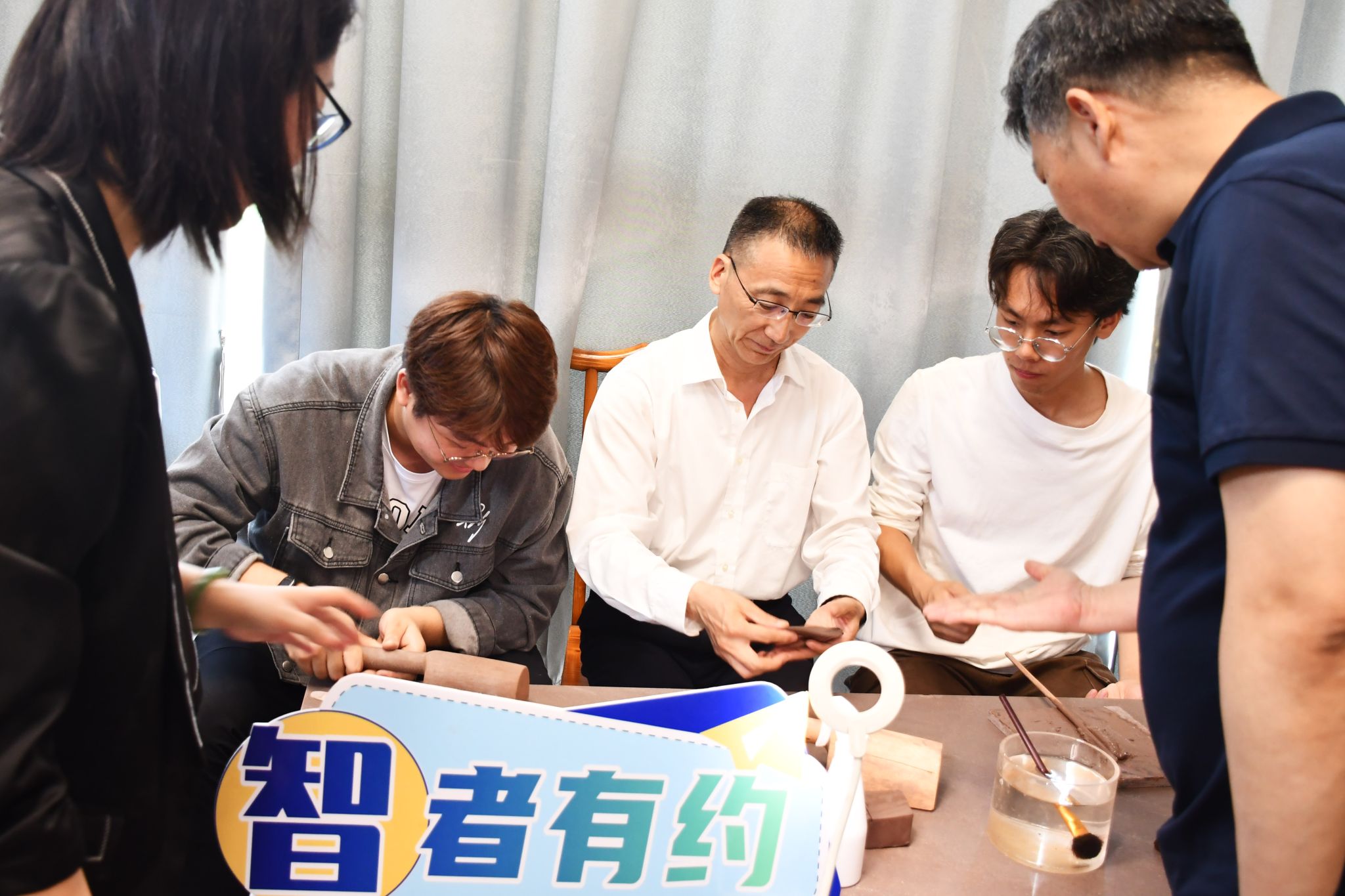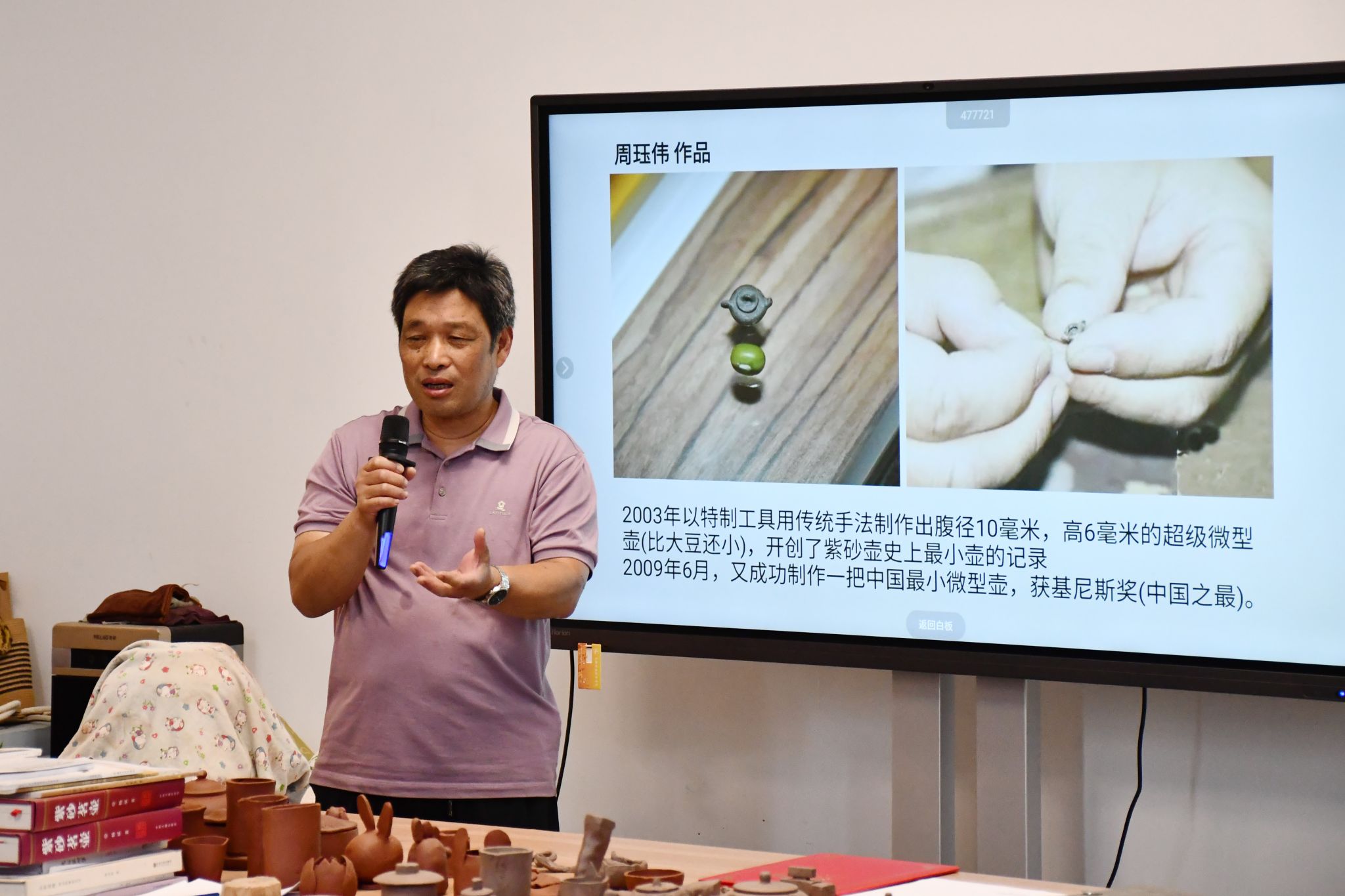 龚方红与学生体验紫砂技艺
