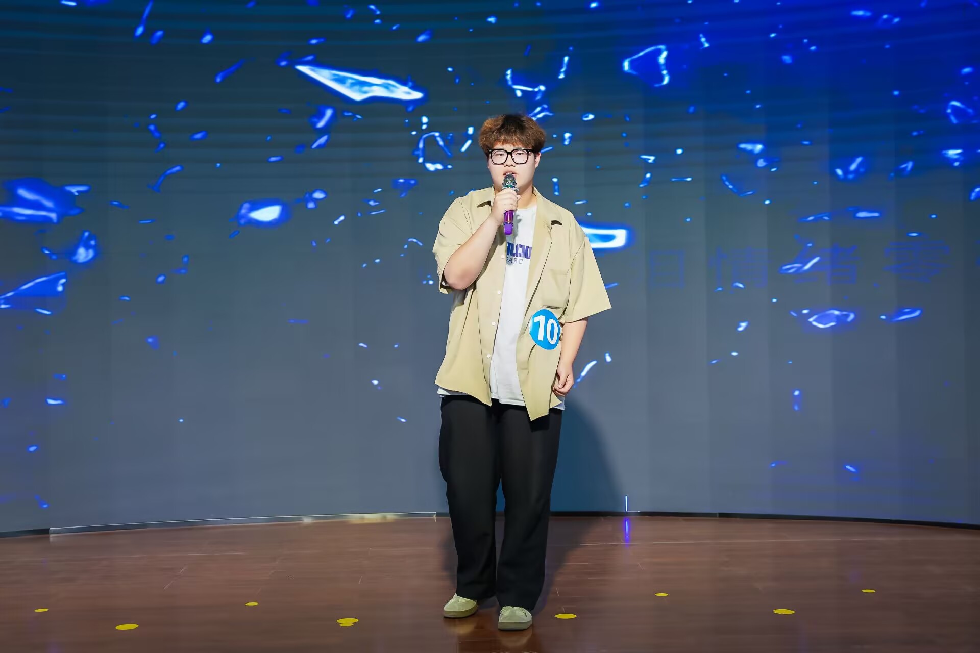 决赛在精彩的合唱表演中拉开序幕。选手们组成风格多样的合唱小组,配合默契、歌声嘹亮。他们用青春的朝气与对音乐的执着,演绎出一首首动人心弦的曲目,迅速点燃了现场气氛,让观众沉浸在音乐的魅力之中。紧张激烈的合唱环节结束后,中场小游戏“听歌识曲”将现场氛围从紧张的竞技转变为欢乐的互动。同学们积极参与,现场欢声笑语不断,掌声此起彼伏,尽显青春活力。