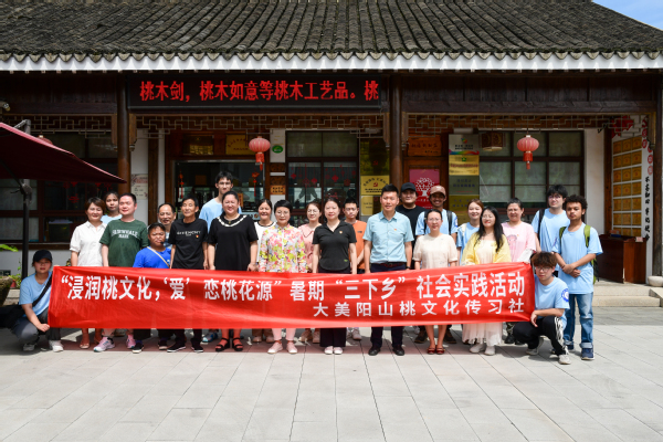 本次活动也是学院暑期“三下乡”社会实践活动项目的重要内容。本次实践团队为“大美阳山桃文化传习社”,实践主题为“浸润桃文化,‘爱’恋桃花源”,旨在依托“水蜜桃之乡”的“桃文化”,以党建共建为平台,以桃雕体验、参与直播、主题宣讲、采访调研等为主要实践形式,落实美育和劳动教育等育人目标,引导和帮助青年学生上好与现实相结合的“大思政课”,在社会课堂中“受教育、长才干、作贡献”,浸润桃文化、传承“桃基因”,感受文化的“厚家底”如何成为发展的“新引擎”,进一步增强文化自信。