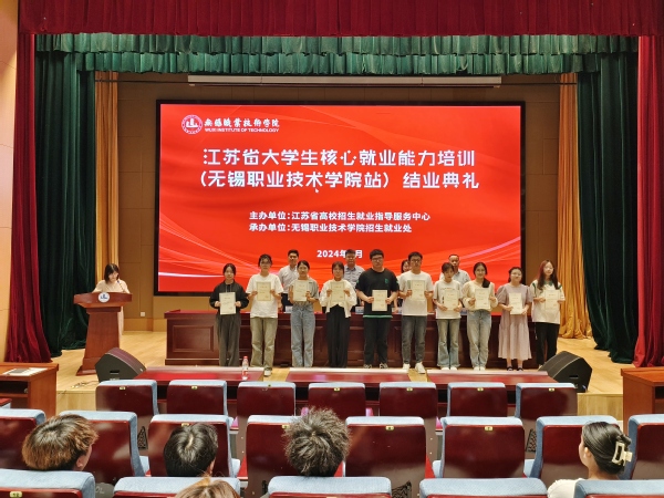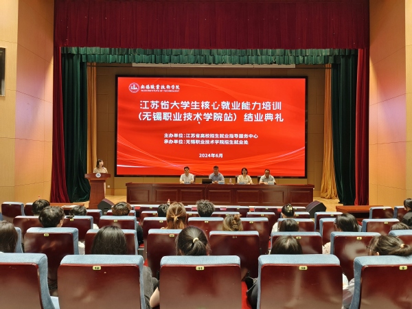 6月4日下午,江苏省大学生核心就业能力培训(球友会app最新版下载站)结业典礼在厚德楼一楼报告厅顺利举办。招生就业处处长房磊、校团委书记郑月圆、招生就业处副处长石华、校友代表石晴伟以及160名学生参加了结业典礼。