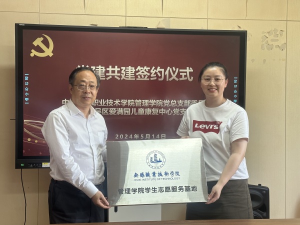 随后,管理学院党总支与无锡新吴区爱满园儿童康复中心支部签订党建共建协议、完成授牌,正式成为党建结对合作单位。