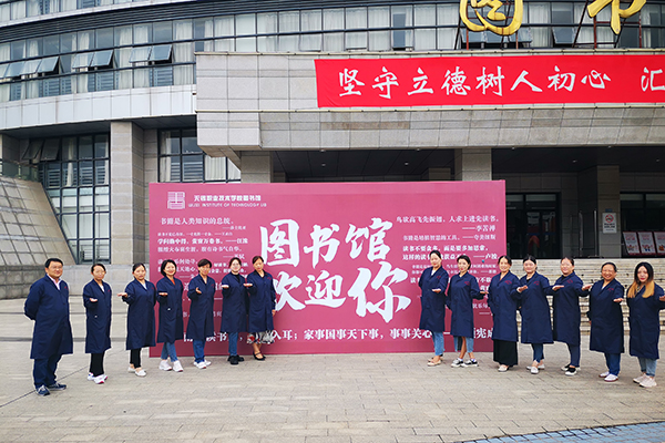 新生入校后,为营造全馆迎新气氛,结合“江南文化”阅读推广品牌,图书馆制作“图书馆欢迎你”大型展板,印有关于读书的名言警句,以引起读者共鸣。制作一批宣传展架,分别介绍图书馆库室空间、推荐新书、期刊推荐、电子资源数据库,标示图书借阅流程;印发“读者须知”折页,以“沉静 充实 观复 行远”为主题的馆长寄语作为开篇,详细介绍图书馆功能与使用,组织与活动等。宣传资料以江南文化元素为设计背景,清爽雅致,让读者在耳目一新的阅读中清晰详细地了解图书馆。