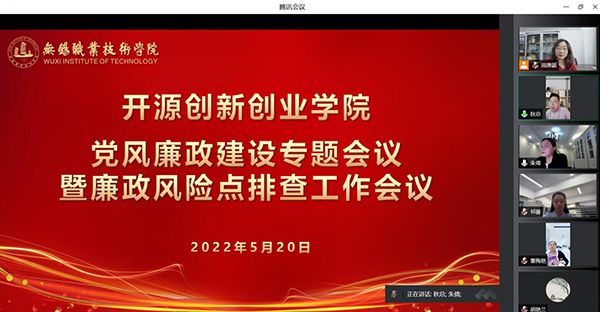 为深入推进党风廉政建设工作,做好廉政风险点排查及防控,开源创新创业学院党总支于5月20日下午,继二级中心组线上集中学习之后,召开党风廉政专题会议暨廉政风险点研判。学院党总支委员、班子成员及各科室负责人悉数参会,会议由党总支副书记朱倩主持。