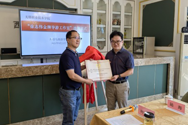 9月22日上午,国家文化和旅游部金牌导游人才培养项目——徐志伟金牌导游工作室在外语与旅游学院挂牌成立。学院特邀无锡市旅游业协会刘和平副会长、无锡市旅游业协会旅游职教分会虞伟民会长、无锡市职教学会办公室唐文华主任、无锡市旅游集散中心丁杰总经理、陆海经理以及江苏行创研学旅行有限公司陆春英总经理等出席仪式和活动,推动校企深度合作。