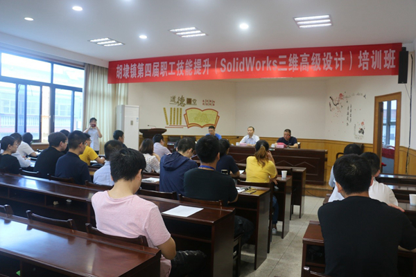 7月13日上午,我校承办的胡埭镇职工SolidWorks三维设计高级技能培训班在胡埭镇党校开班,胡埭镇总工会副主席宋浩全、我校继续教育学院副院长饶成明、控制技术学院教师程远和来自胡埭镇有关企业的34名学员参加了开班仪式。