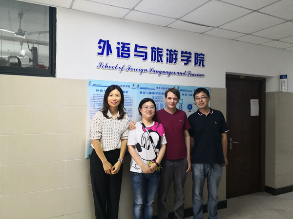 7月12日下午,外语与旅游学院院长杨丽、院长助理徐优明、应用德语教研室负责人雷蕾在学院会议室为德语外教Thomas举行了欢送会。