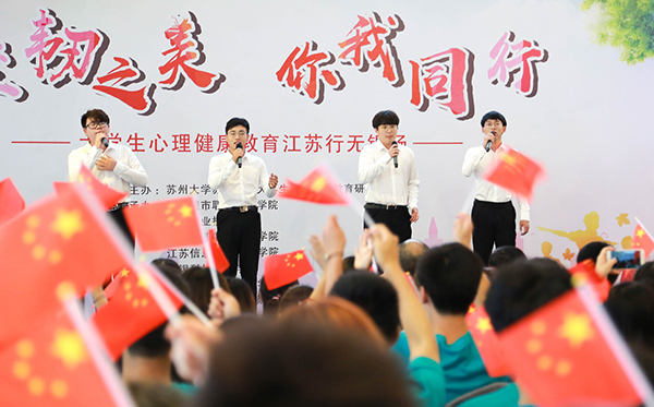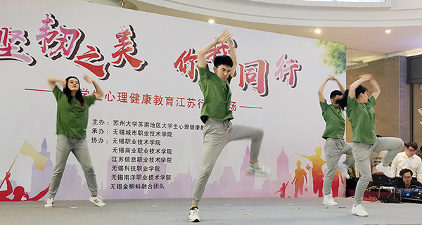 5月26日下午,“坚韧之美,你我同行”大学生心理健康教育江苏行无锡场快闪活动在中山路红豆万花城拉开帷幕,来自无锡城市职业技术学院、我校等在锡6所高校的青年学子,用歌舞诠释坚韧的意义,体验生命的力量。