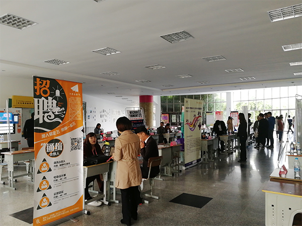 本次招聘会通过第一校招网发布,提前对用人单位的资质和招聘岗位进行审核,并将参会企业信息和招聘岗位发布给学生,让学生可以提前了解用人单位概况及招聘岗位等信息。此次招聘会现场秩序井然、人头攒动,应聘者手持精心准备的自荐书和简历,穿梭于企业展台之间,仔细浏览招聘海报,了解用人单位、招聘岗位、专业要求、薪酬待遇等相关信息,积极与招聘人员沟通交流。