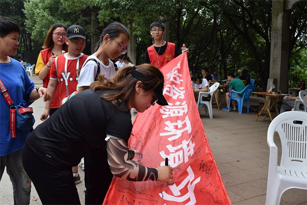 6月10日早上,全体成员身着球友会app最新版下载汽车与交通学院志愿者服装,带着保护环境的横幅在学校图书馆门口集合,然后前往活动目的地——惠山。活动开始后我们由山脚出发,在沿途的山道上,向路人宣传保护环境的重要意义,并邀请路人们在“环境保护”横幅上签字。在登山的过程中,同学们只要看到垃圾就会主动捡起放入垃圾桶,把保护环境的理念和实际行动结合起来。