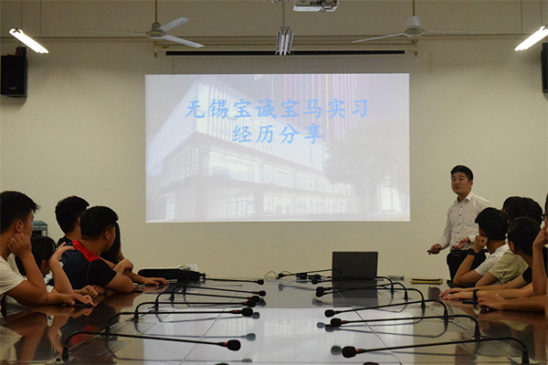 为弘扬工匠精神,鼓励更多的同学积极投身专业实践,汽车与交通学院于2018年6月5日在国际交流中心二楼会议室举办了2018届毕业生实习经验分享报告会。汽车与交通学院2018届5名毕业生、2016级、2017级在校学生参加了本次活动。
