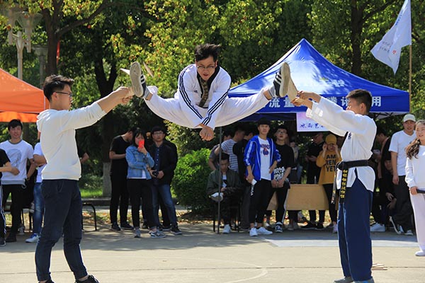 4月13日下午,学生公寓兰园前的操场上人声鼎沸、热闹非凡,我校大学生社团齐聚一堂,各展风采,在校园里形成了一道靓丽的风景线。这是我校首届社团巡礼日活动现场,吸引了众多同学们参与其中。