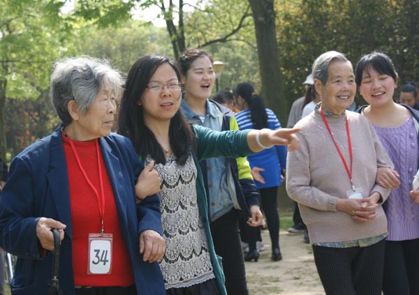 志愿者们一早从学校出发前往扬名颐养院,搀扶老人们上了车,20分钟车程后来到了景区。在工作人员的安排下,老人们围成一圈做游戏。击鼓传花游戏中老人们给志愿者们展示了才艺,年轻的心态和健硕的体格让大家深受感染。
