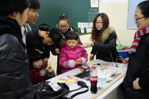 1月6日下午,虽然寒凝大地,但无锡市南长区培智学校的教室里却暖意浓浓。来自艺术设计系的53名师生志愿者,正在这里向100多名智障儿童赠送水彩笔、七巧板、巧克力等礼品,并和小朋友们一起唱歌、做游戏、捏橡皮泥,给这些特殊孩子送去了一片爱心和温暖。