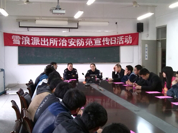 上午,雪浪派出所联合学校保卫处对学生干部开展治安防范、预防诈骗专题宣传教育活动,有近