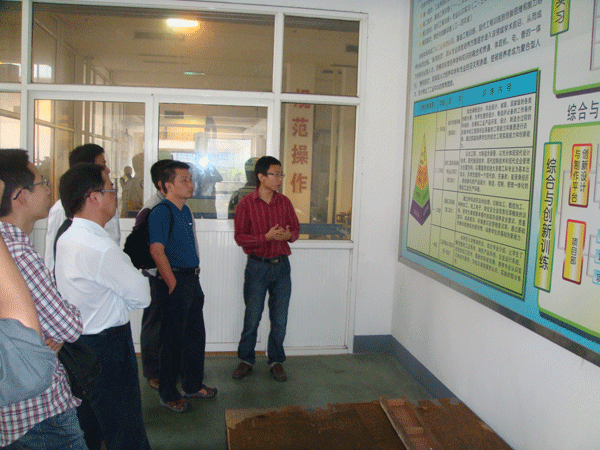 9日上午,考察团在江苏大学参观了工业系统认识实习、基础工程训练、现代工程训练以及创新训练四个基地,并与实训基地的负责人进行了交流,对该校实践教学的模式、特点等有了新的认识。9日下午,在常州机电职业技术学院柴主任的陪同下,对常州大学城的工业中心实训基地进行了参观,实训基地的设备维护和先进的管理模式给考察团留下了深刻印象。