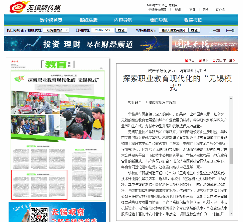 【无锡日报】探索职业教育现代化的“无锡模式”