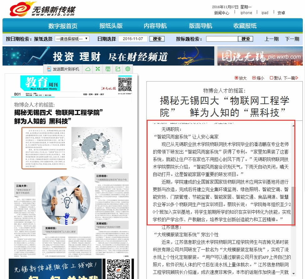【江南晚报】揭秘无锡四大“物联网工程学院” 鲜为人知的“黑科技”