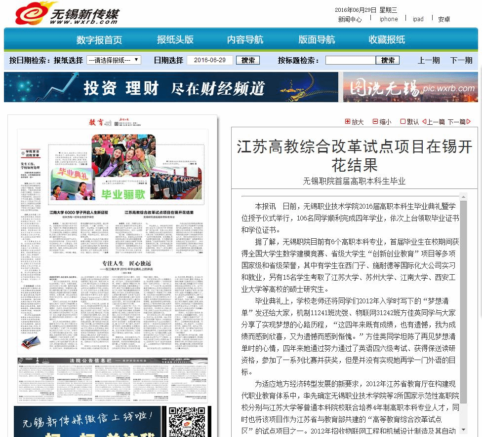 《无锡日报》 2016年6月29日11版