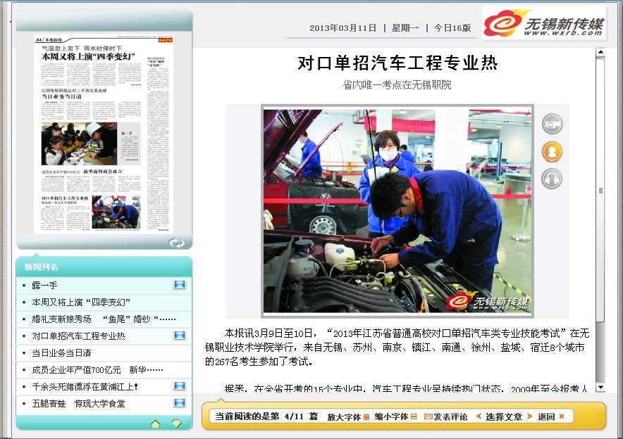 本报讯 3月9日至10日,“2013年江苏省普通高校对口单招汽车类专业技能考试”在球友会app最新版下载举行,来自无锡、苏州、南京、镇江、南通、徐州、盐城、宿迁8个城市的267名考生参加了考试。