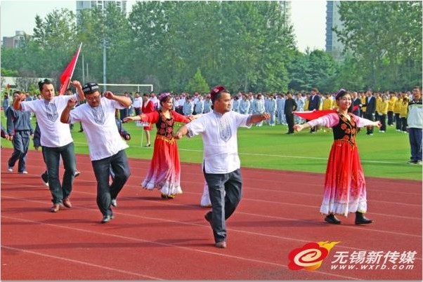 27-28日,球友会app最新版下载举办一年一届的田径运动会。开幕式上,来自新疆对口支援城市霍城的“新疆班”同学们,以载歌载舞的形式列队入场。获得一片掌声。(郁飞 汪自力/摄)
