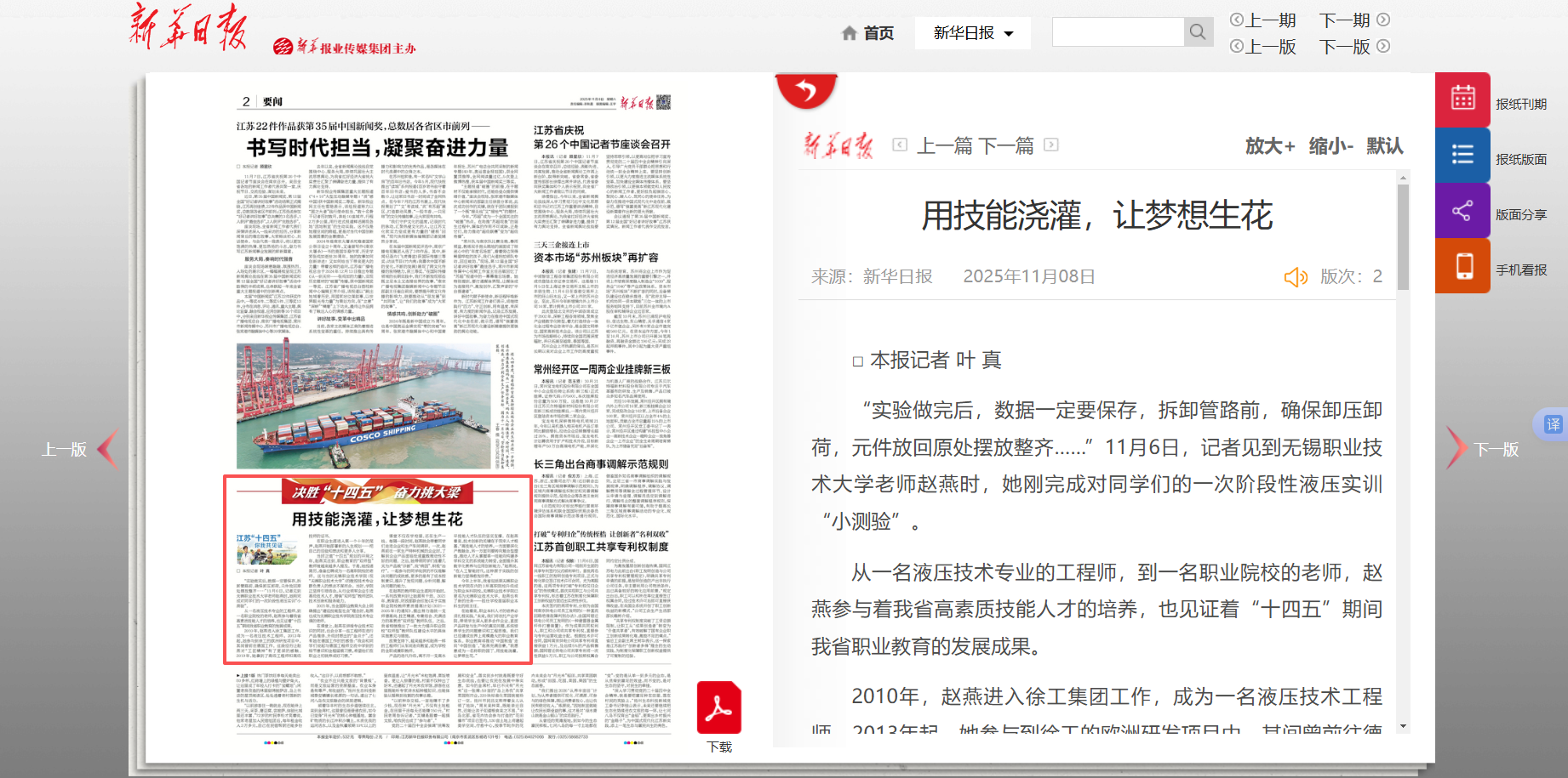【新华日报】用技能浇灌,让梦想生花