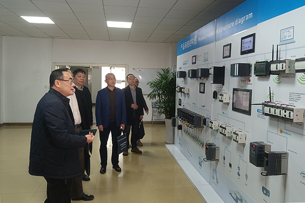 强伟纲陪同督查组赴合作企业信捷电气有限公司现场督导企业开展企校合作情况,信捷电气副总经理过志强从企业发展、实习就业、技术合作、政策供给、问题障碍等方面向督查组作了详细汇报。