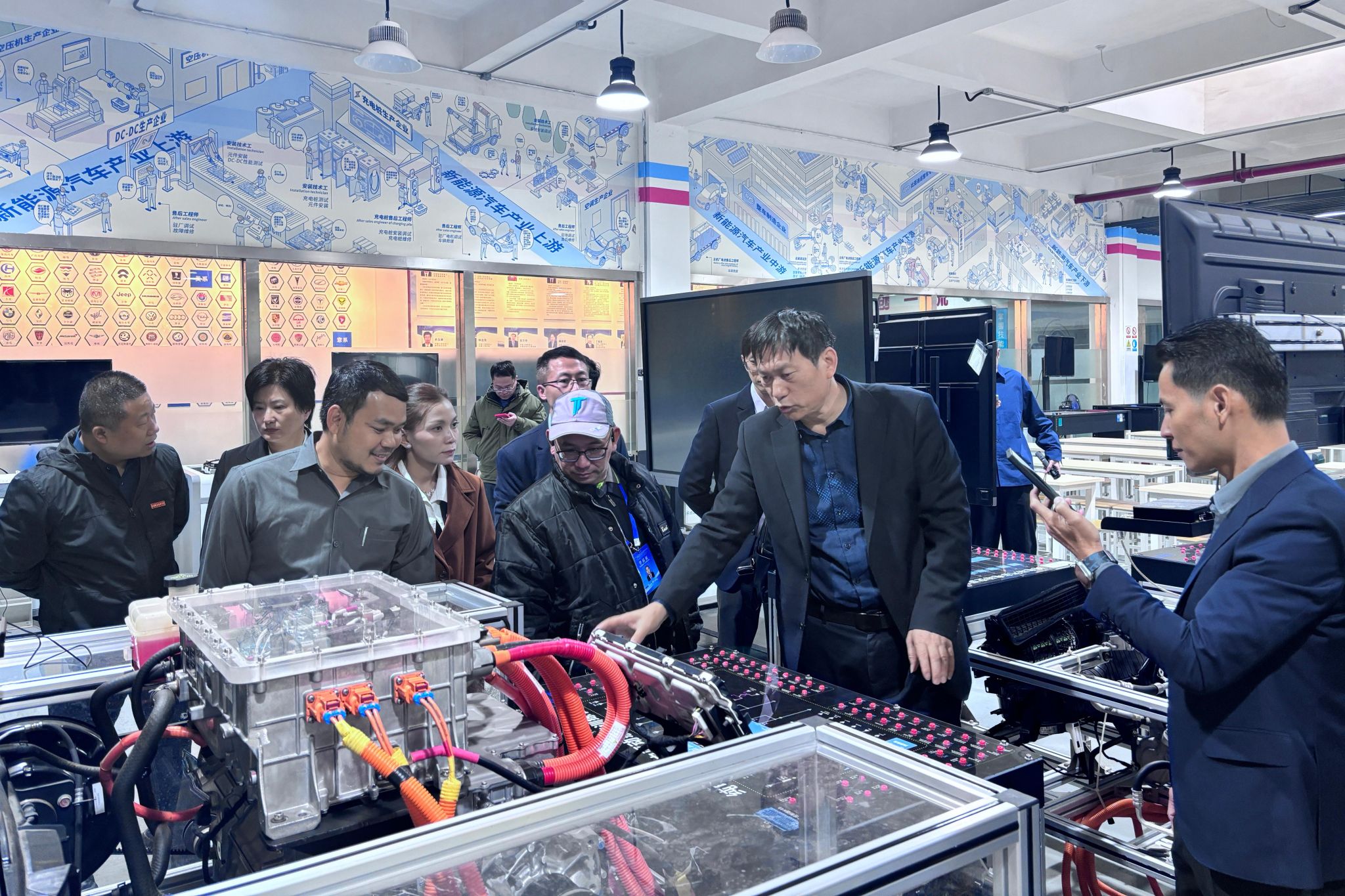通过展示和实操,代表团一行从三维虚拟仿真技术在数字化产线培训和数控加工技能鉴定中的应用、校企合作新能源汽车维修培训、文旅项目国际职业技能培训等方面学习和了解了我校在职业技能培训和鉴定的经验及成果,并与相关负责人进行了深度交流。